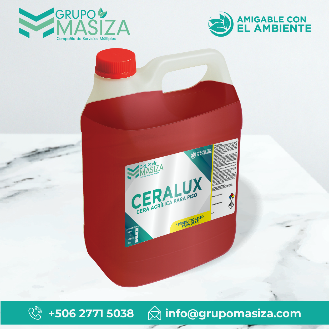 CERALUX es una cera acrílica concentrada, formulada a base de ceras Micro sintéticas, polímeros abrillantadores Biodegradables, agentes antideslizantes y desinfectantes que además de dejar un agradable aroma en los pisos, los limpia y desinfecta.