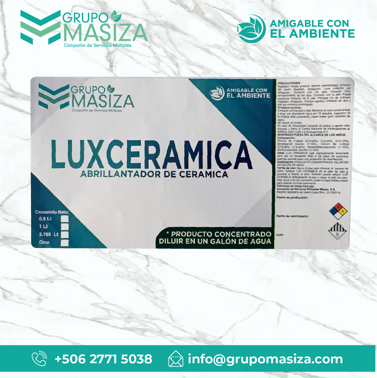En su forma concentrada se puede diluir 1 parte de producto en 4 partes de agua limpia.